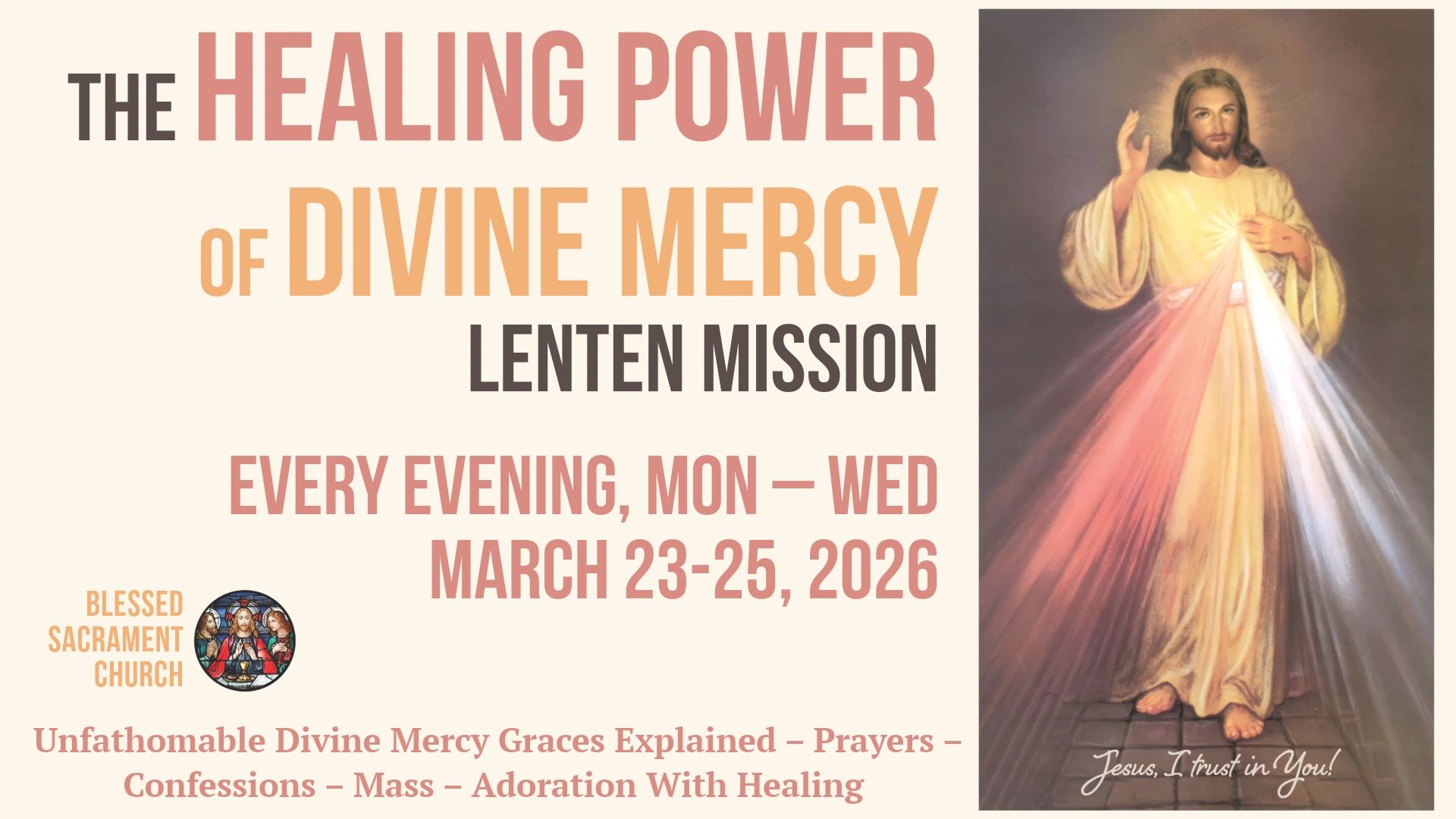Please join us for this most powerful spiritual Lenten Mission to nourish your soul with food which lasts for eternal life! Discover how to draw from Jesus' unfathomable Graces for yourselves and for your loved ones.